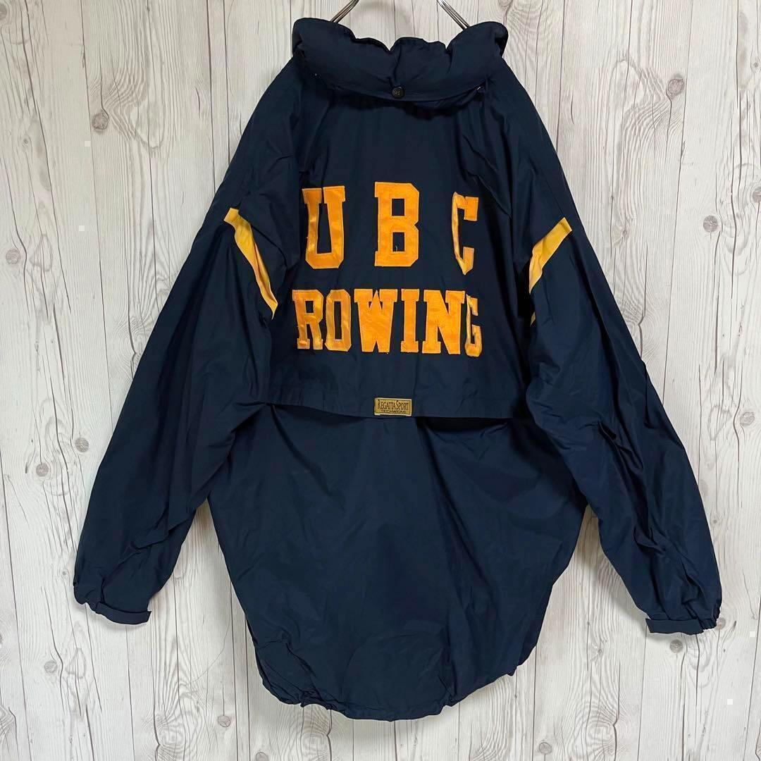 > カナダ製 REGATTA レガッタ フード付ナイロンパーカー 紺 ネイビー メンズLサイズ バックデカプリント フルオーバー
