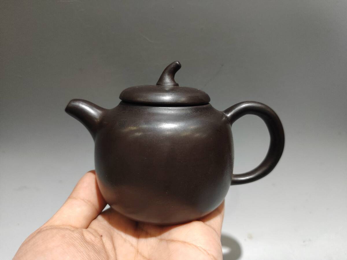 - 『館蔵珍品 紫砂壺 柿圓壺 顧景舟款 紫泥 紫砂壺』置物 賞物 貴重物品 収蔵品 中国古美術