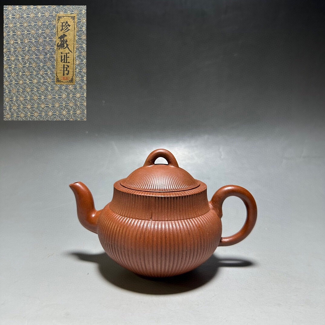 > 友人館蔵 古紫砂製 笠帽壺 顧景舟款 茶壺 紫砂壺 急須 茶道具 煎茶道具 極細工 古賞物 古美味 東洋彫刻 時代物 骨董 中国古美術