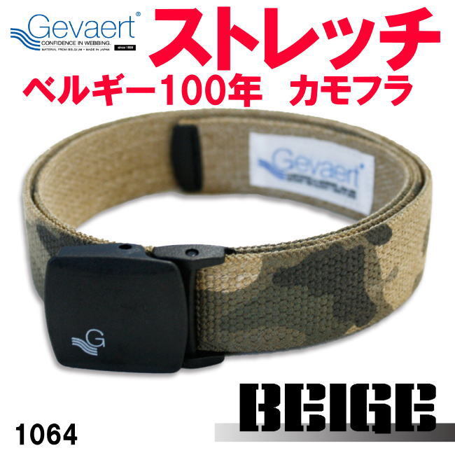 - ベージュ 1064 ゲバルト カモフラ ベルト ベルギー 100年 日本製 ストレッチ