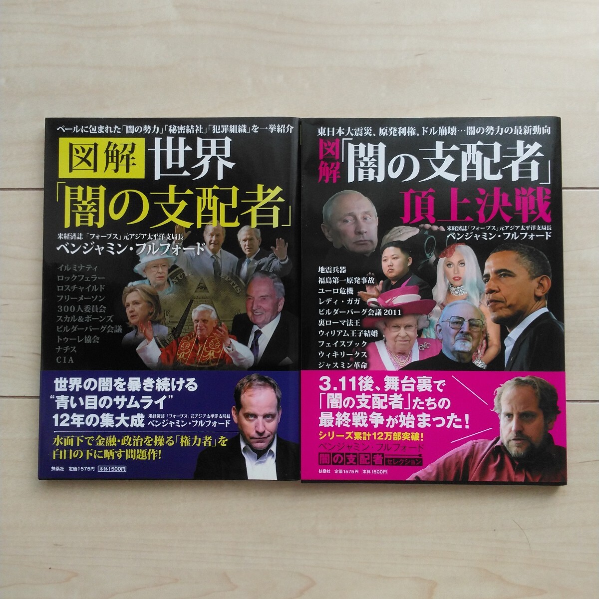 - ■『図解世界闇の支配者』及び『図解闇の支配者頂上決戦』Benjamin Fulford(米経済誌「Forbes」元亜細亜太平洋支局長)著。初版カバー帯。