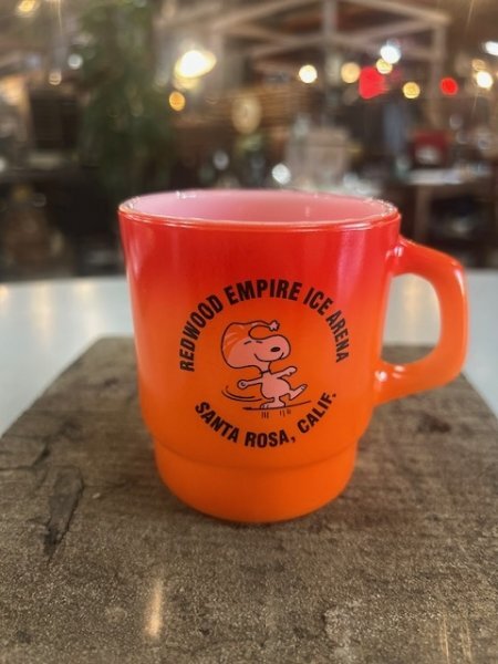このマグにはアリフォルニア州サンタローザのエンパイアアイスアリーナのマスコットであるスヌーピーが描かれており非常にレアなアドマグです。