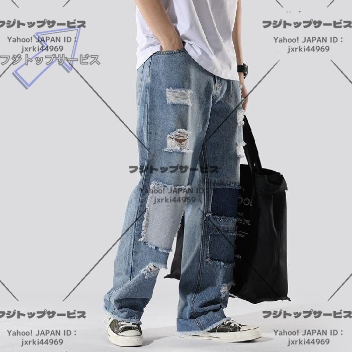 - 人気 カジュアル デニムパンツ メンズ ワイドパンツ パッチワーク ハーレムパンツ ゆったり ジーンズ ボトムス Gパン M~3XL