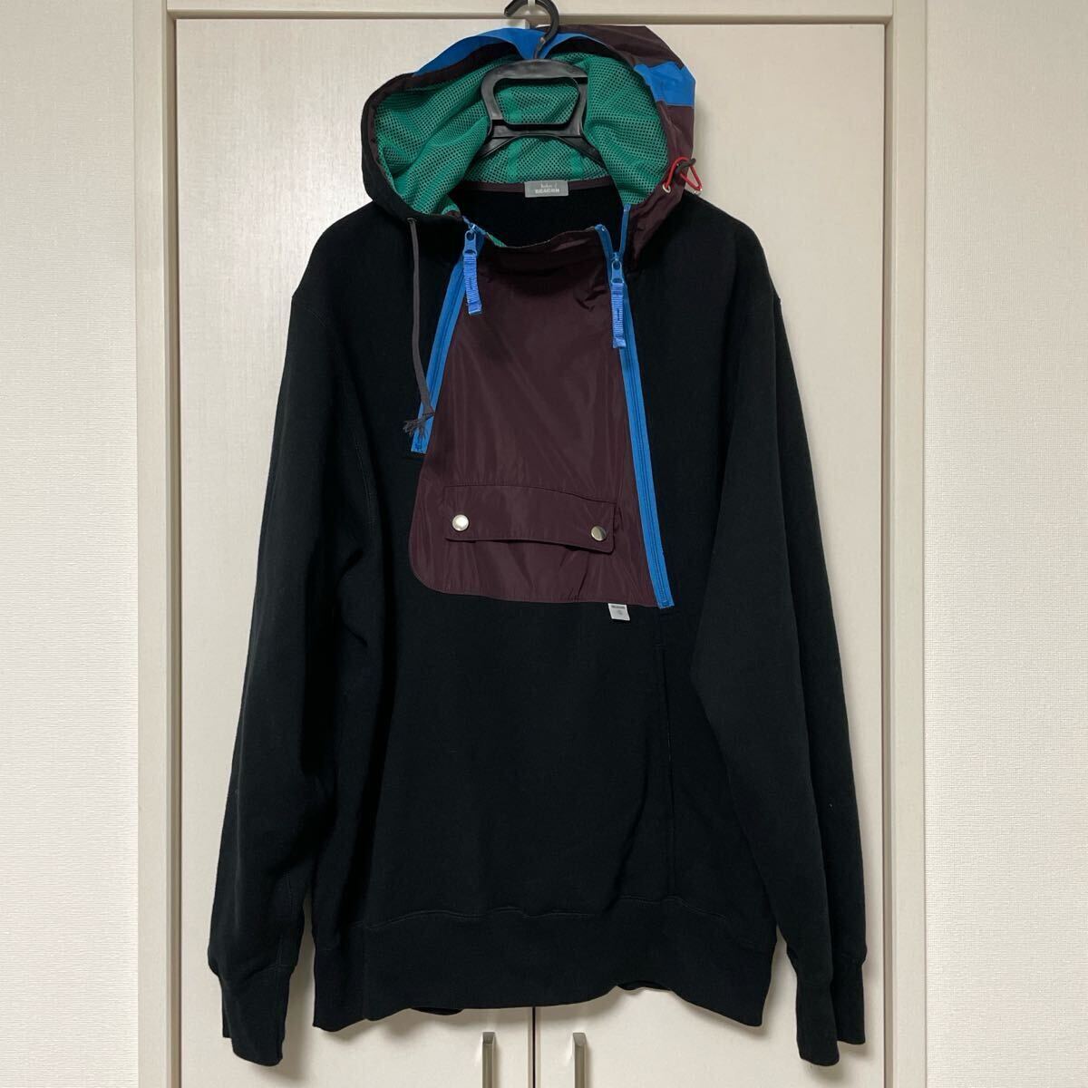 - kolor スウェット パーカー ★ マルチカラー 好配色 3フーディー 黒 美品 人気 即完売 カラービーコン ジップアップ HOODIE フーディ レア