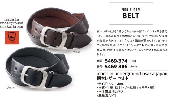 - ☆★☆新品 made in underground osaka.japan 栃木レザーベルト 1本 ☆★☆