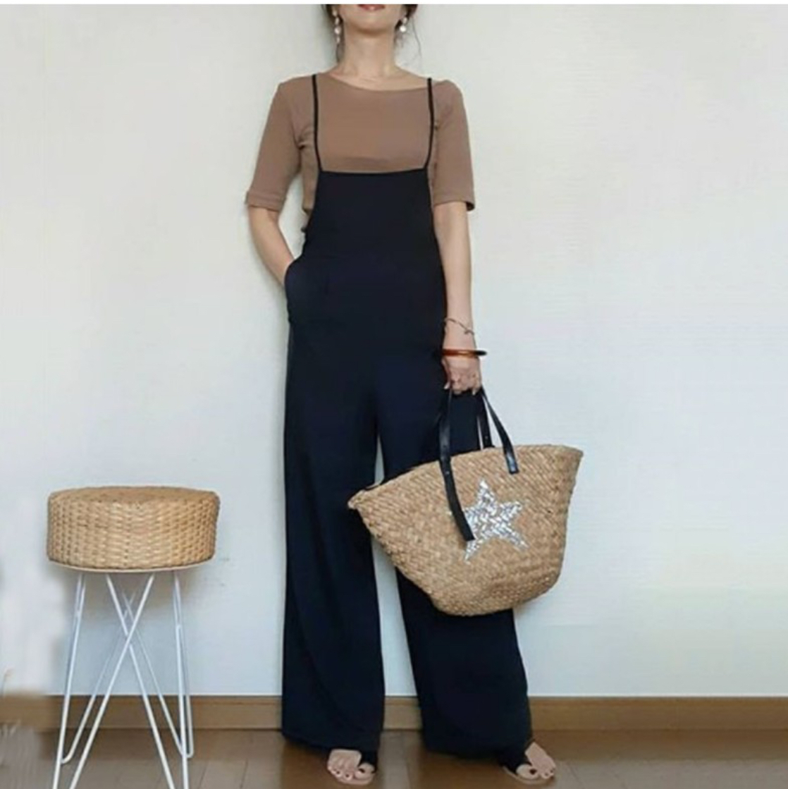 - 【新品!未使用!】オールインワンパンツ 黒 フリーサイズ レディース シンプルデザイン 脚長効果