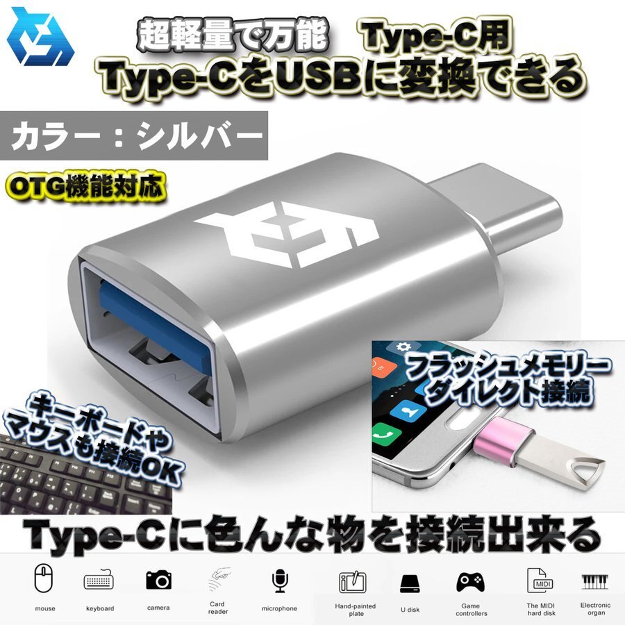 - 【OTG対応】 Type-C用 Type-C端子 を USB 変換 色んなUSB機器を スマホに接続出来る 超軽量 万能 アダプター x1 【シルバー】