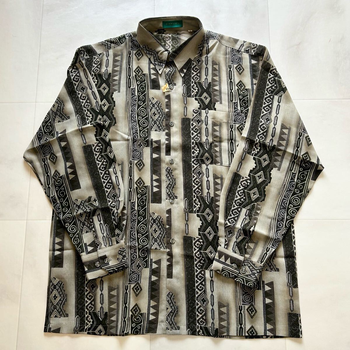 > 90s CARVEN PARIS カルヴェン 総柄 柄シャツ 民族柄 レトロ アート ビンテージ 長袖シャツ ポリエステル100%