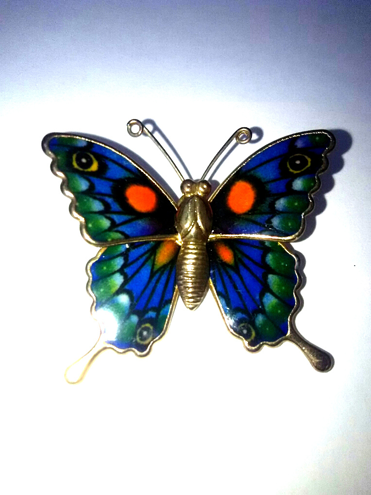 - 昭和レトロ ブローチ 蝶 バタフライ butterfly パピヨン papillon / カラー 青 赤 緑 金 ブルー ネイビー レッド ゴールド アクセサリー