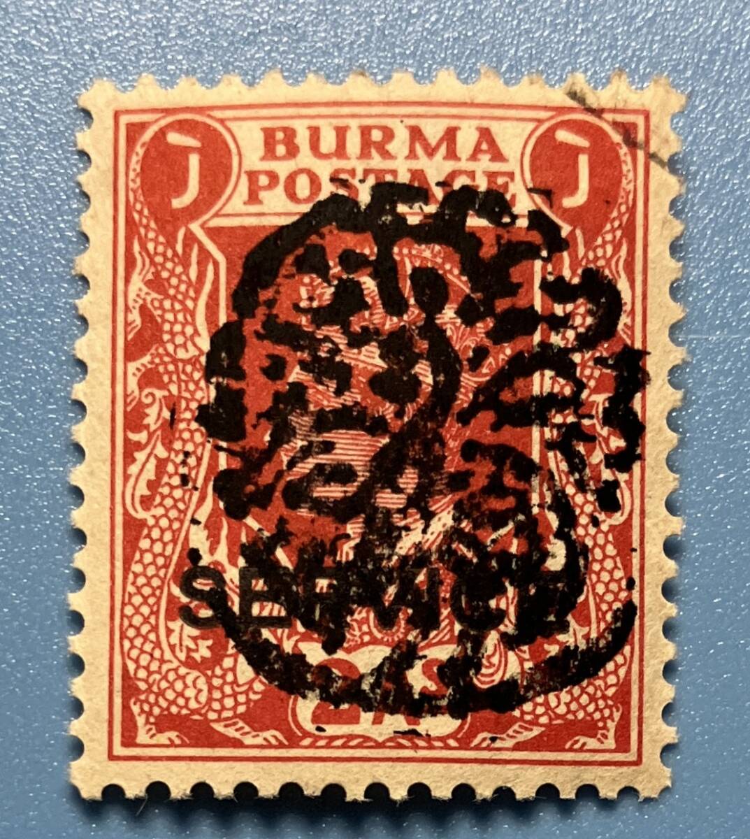 - 南方占領地切手 ビルマ 孔雀加刷 2A SERVICE 裏のり不明 詳細不明 使用済み