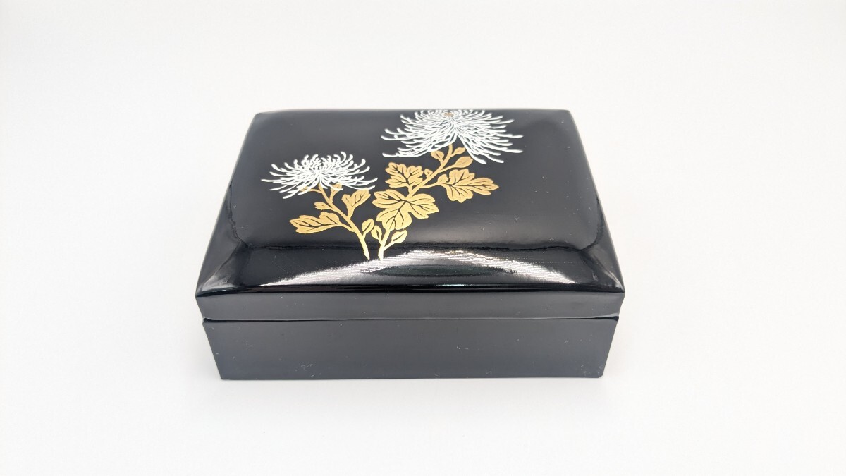 - アンティーク 漆器 黒 小物入れ 小箱 菊