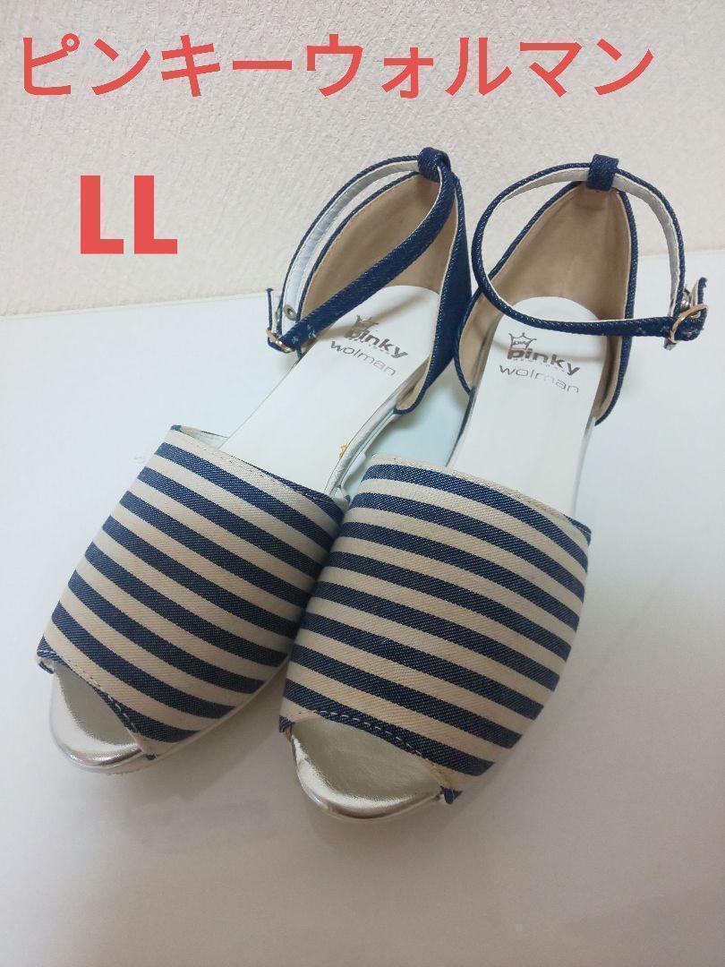 - 値下げ【未使用】ピンキーウォルマン★ボーダーアンクルストラップサンダル★LL