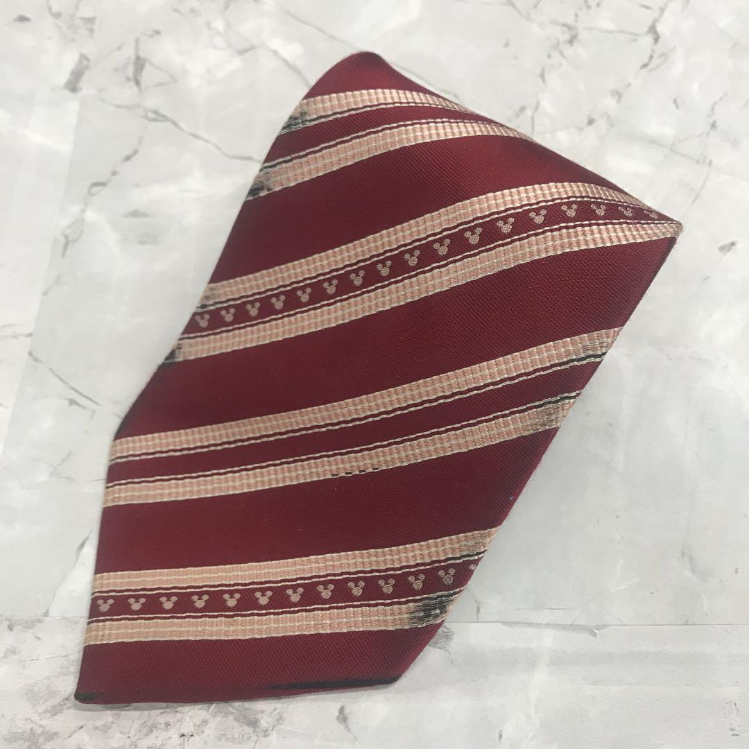 - 東京ディズニーリゾート ネクタイ 紅×ピンクストライプ シルク 絹【n1522】