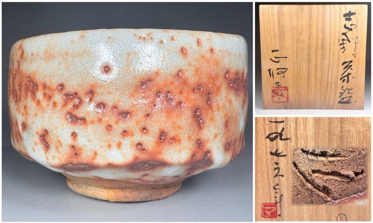 - 中島正雄 造 志野 茶碗 雅山窯 茶道具 共箱 共布 栞 志野焼