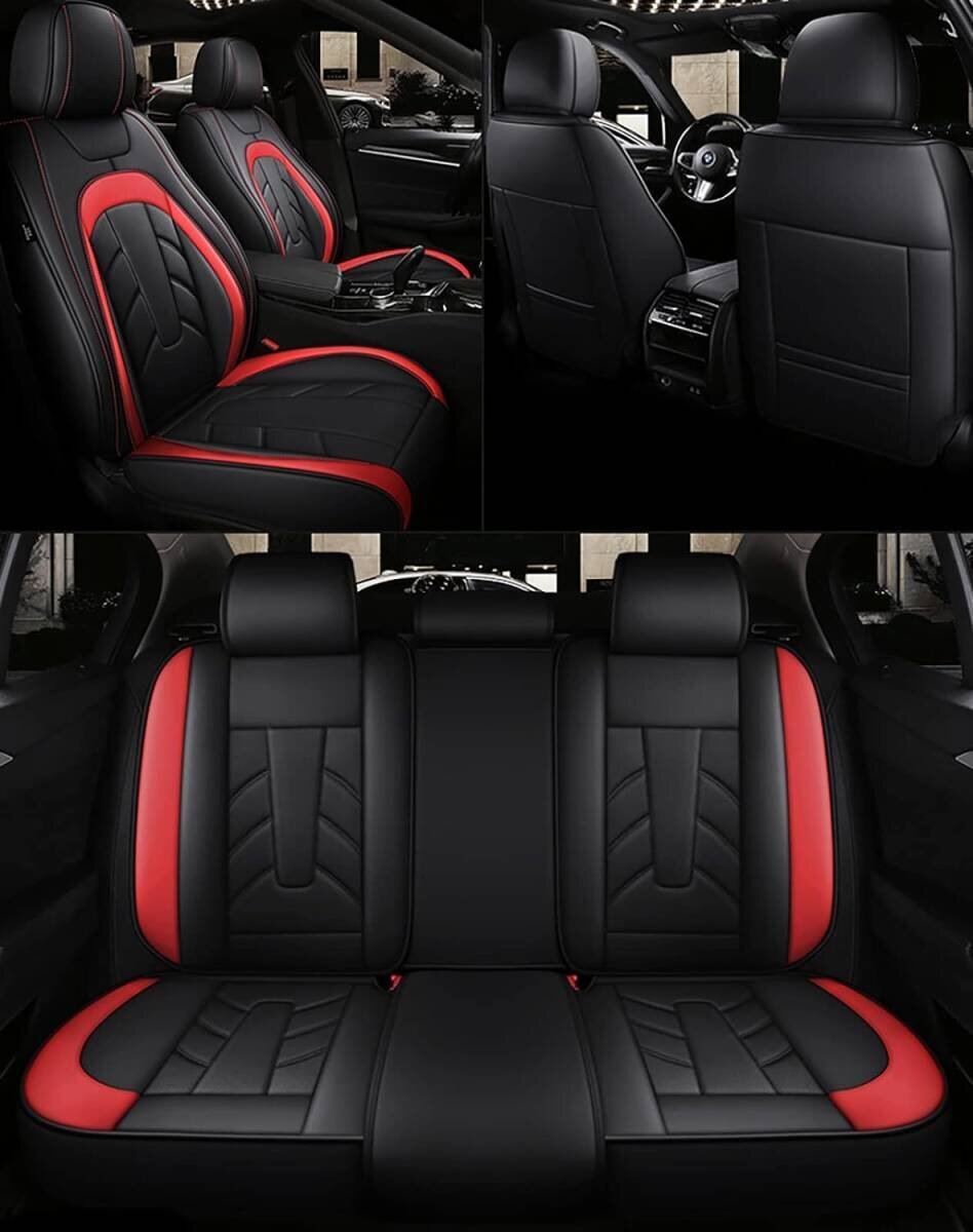 - ■新品■トヨタ ハイエース 200系 (2012年5月~)用 Karstry 高品質レザー製シートカバー前後セット (ブラック×レッド)