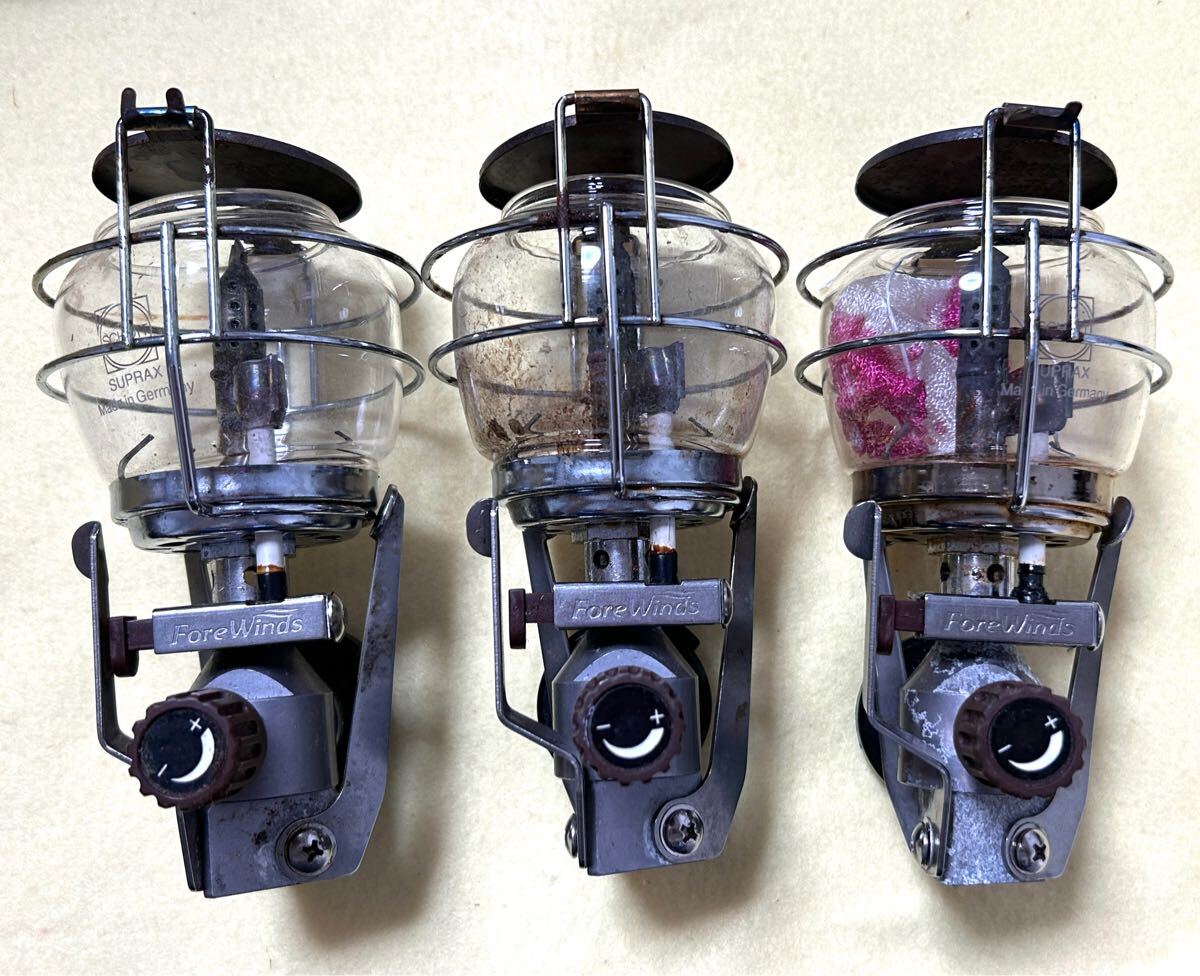 > 着火確認済み イワタニ ガス缶タイプ ForeWinds SUPRAX ドイツ製ガラスホヤ ランタン x3台 本体のみ