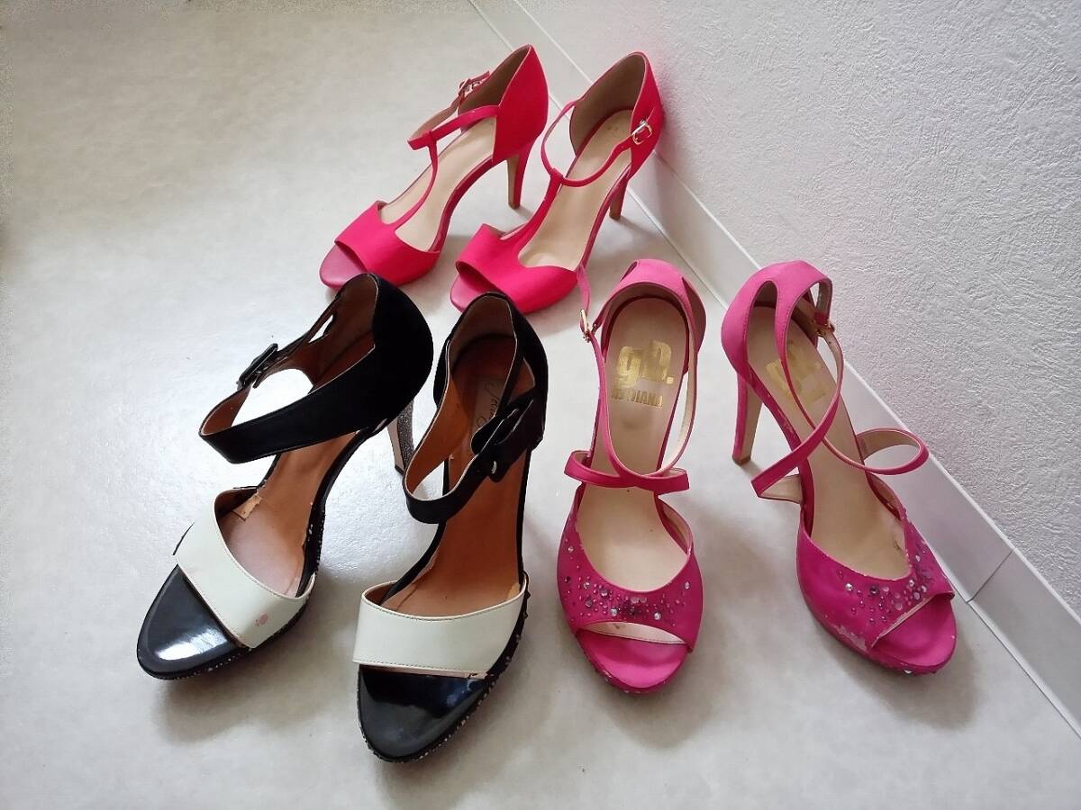 - 中古 ハイヒール ピンヒール 3点セット 23cm 24cm サイズM まとめ売り ハイヒール 3足セット 現状渡し 履き古し 使用感あり 傷みあり 格安