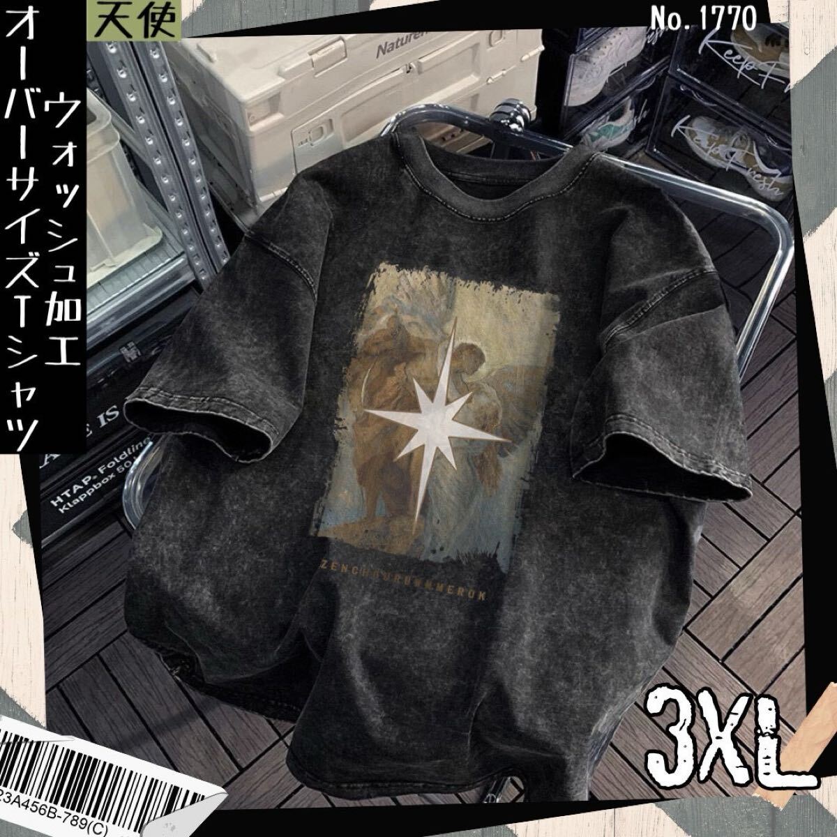 - ウォッシュ加工 オーバーサイズTシャツ 天使 3XL ヴィンテージ 半袖