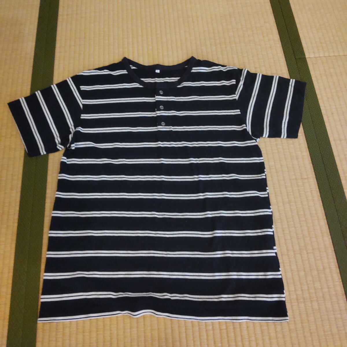 - パジャマ ボーダー 半袖 ネイビー ナイトウェア トップスのみ メンズ Lサイズ