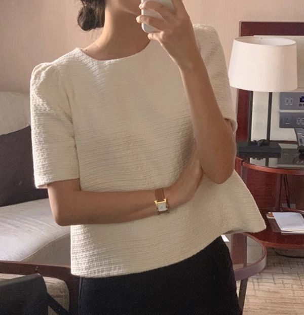 - ★★★レディース トップス ブラウス ラウンドネック ショート丈 半袖 EX09