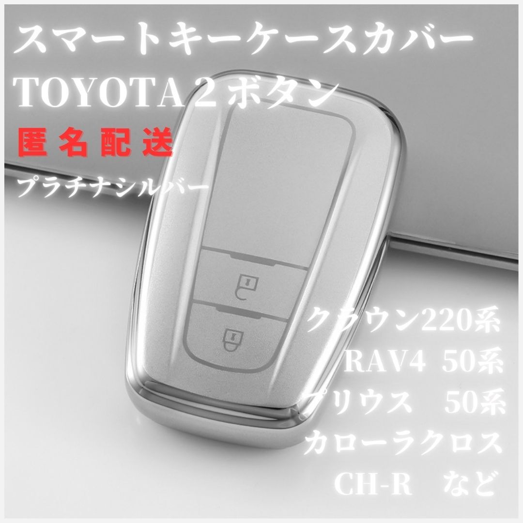 - プリウス50系 CHR RAV4 ランクル150系 トヨタF型 スマートキーキーケース キーカバー キーホルダー 銀プラチナシルバー2ボタン