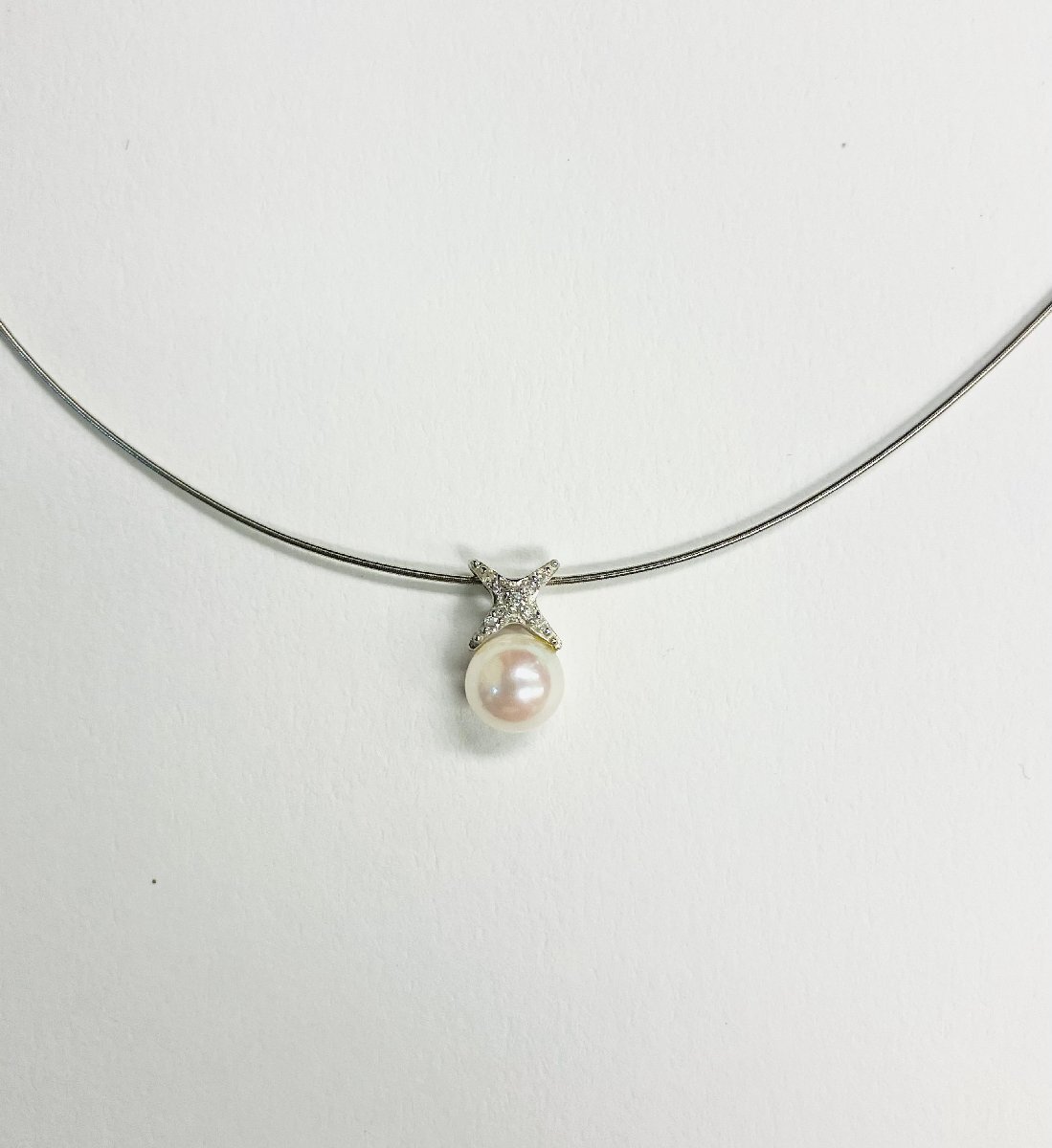 - qoj.ZBG04 K18WG ホワイトゴールド ダイヤモンド パールネックレス D0.06 7.0mm玉