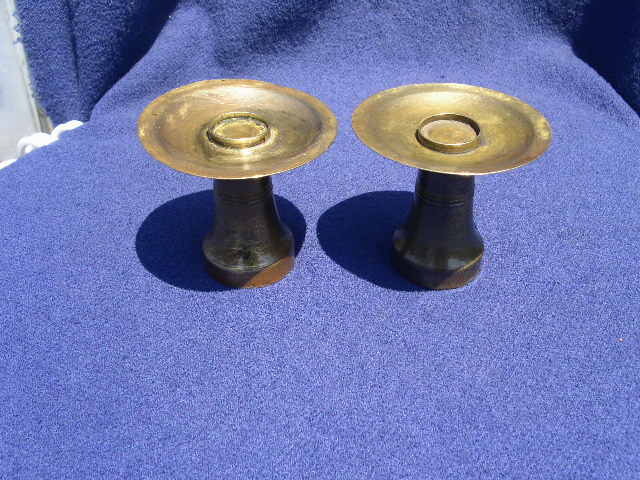 > ★レトロ★ 高台型 銅皿 一対 香皿 油皿 灯明皿 真鍮/黄銅製/銅器/受け皿/お皿/仏具/照明/古道具(ビンテージ・アンティーク)