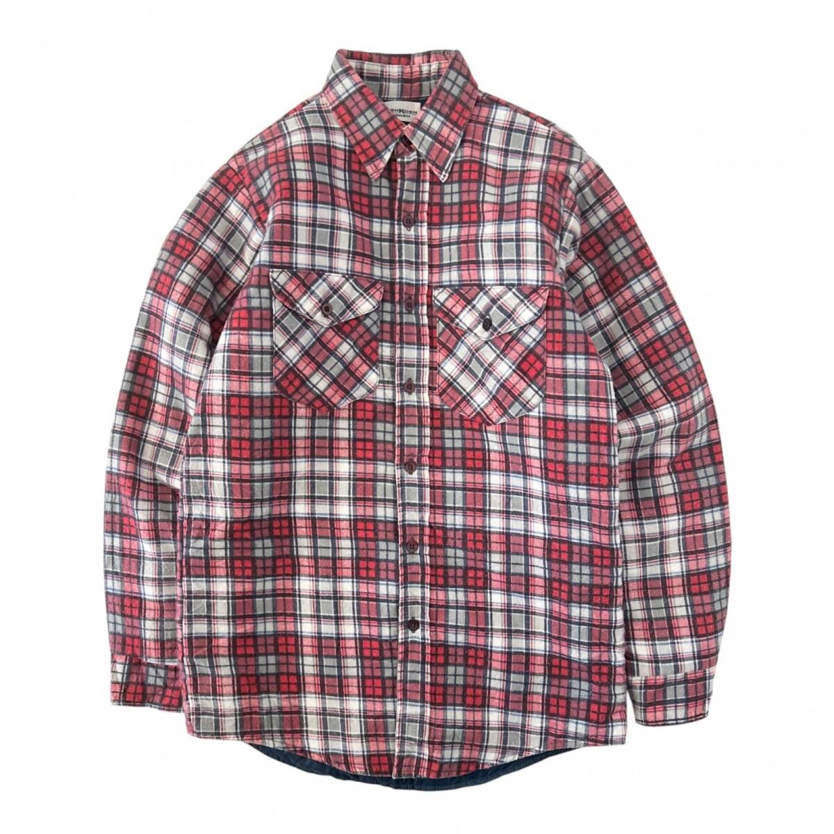 - 70年代 USA製 オシュコシュ OSHKOSH プリントネルシャツ プリネル キルティング ネルシャツ チェック柄 チェックシャツ ヴィンテージ 赤 白