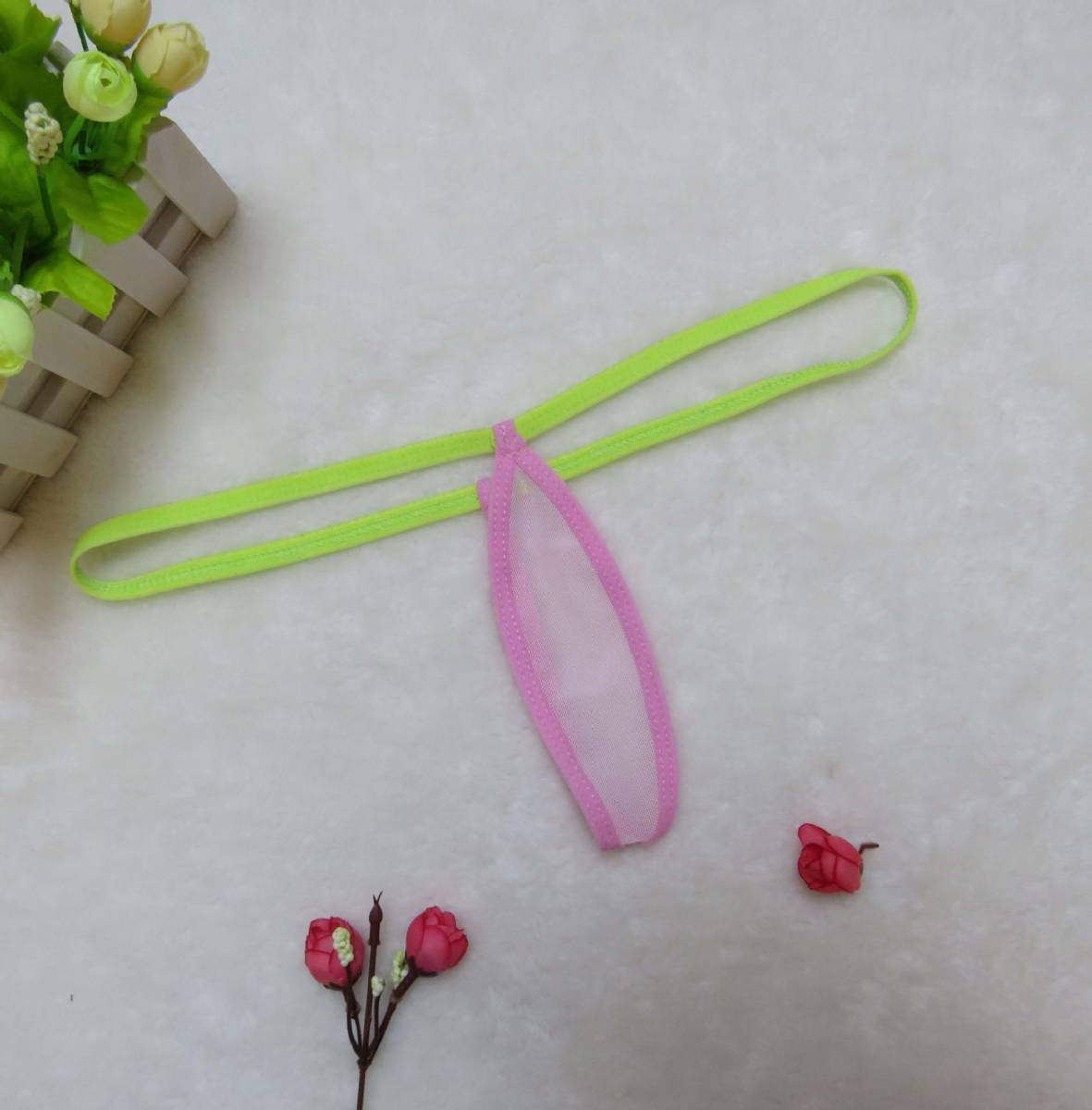 - ★緑紐 ピンクメッシュシースルーマイクロGストTバックショーツ★114