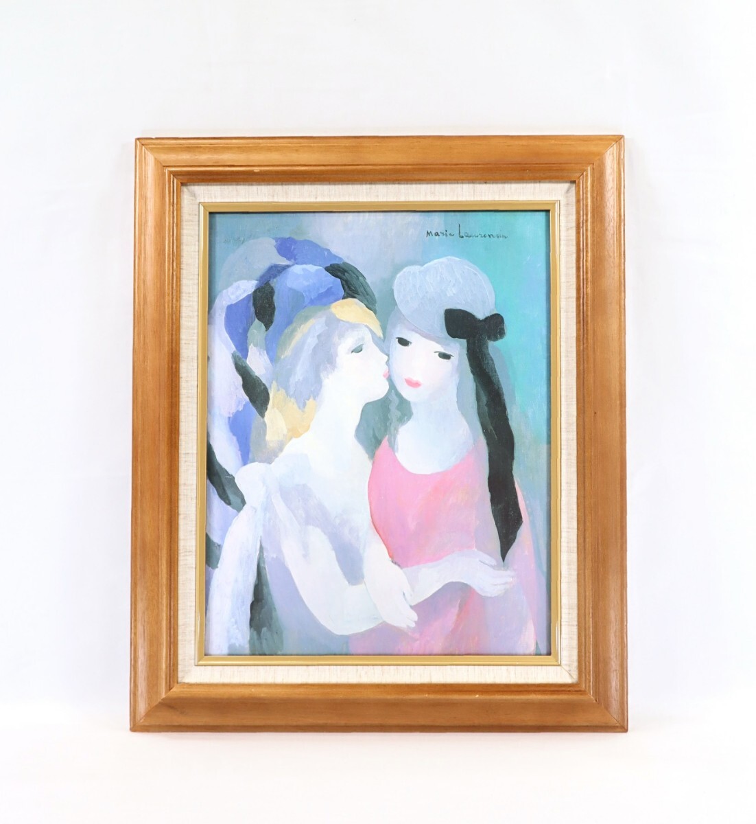 > マリー・ローランサン 複製「接吻」画寸 F6 淡く愛らしいパステルカラーを基調に輪郭線の無い蔭や濃淡で表現の1927年頃の作品 キス 10769
