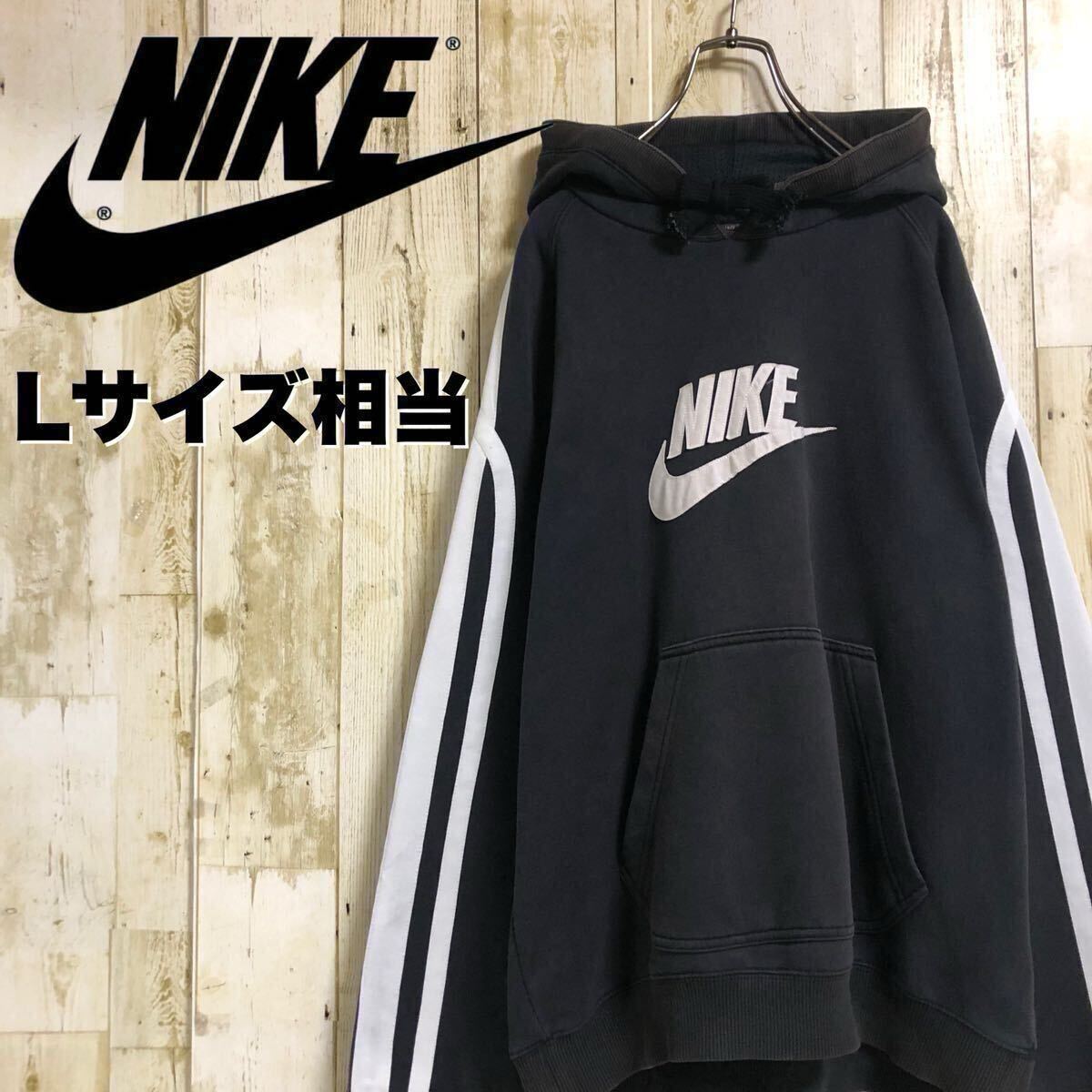 - 【激レア】NIKE ナイキ ビッグスウッシュ ワッペンロゴ ロゴタグ サイドライン 両脇シャーリング ユニセックス プルオーバー L相当 古着