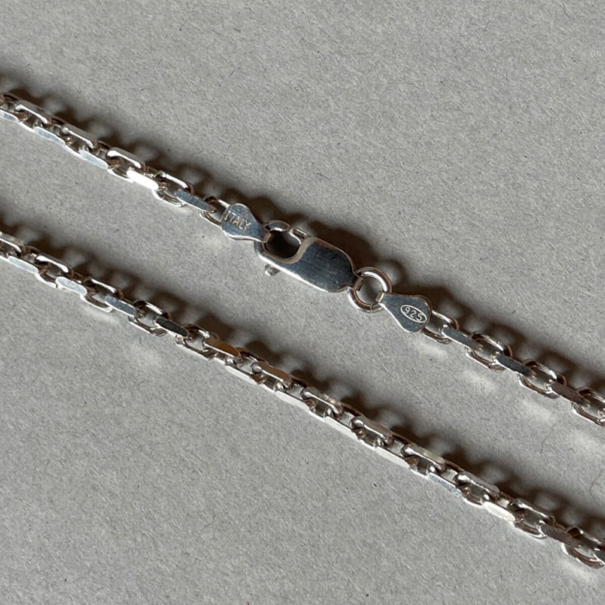 - italy ヴィンテージ ネックレス チェーン ユーロ 太角 ロング 60cm シルバー925 925 ロング
