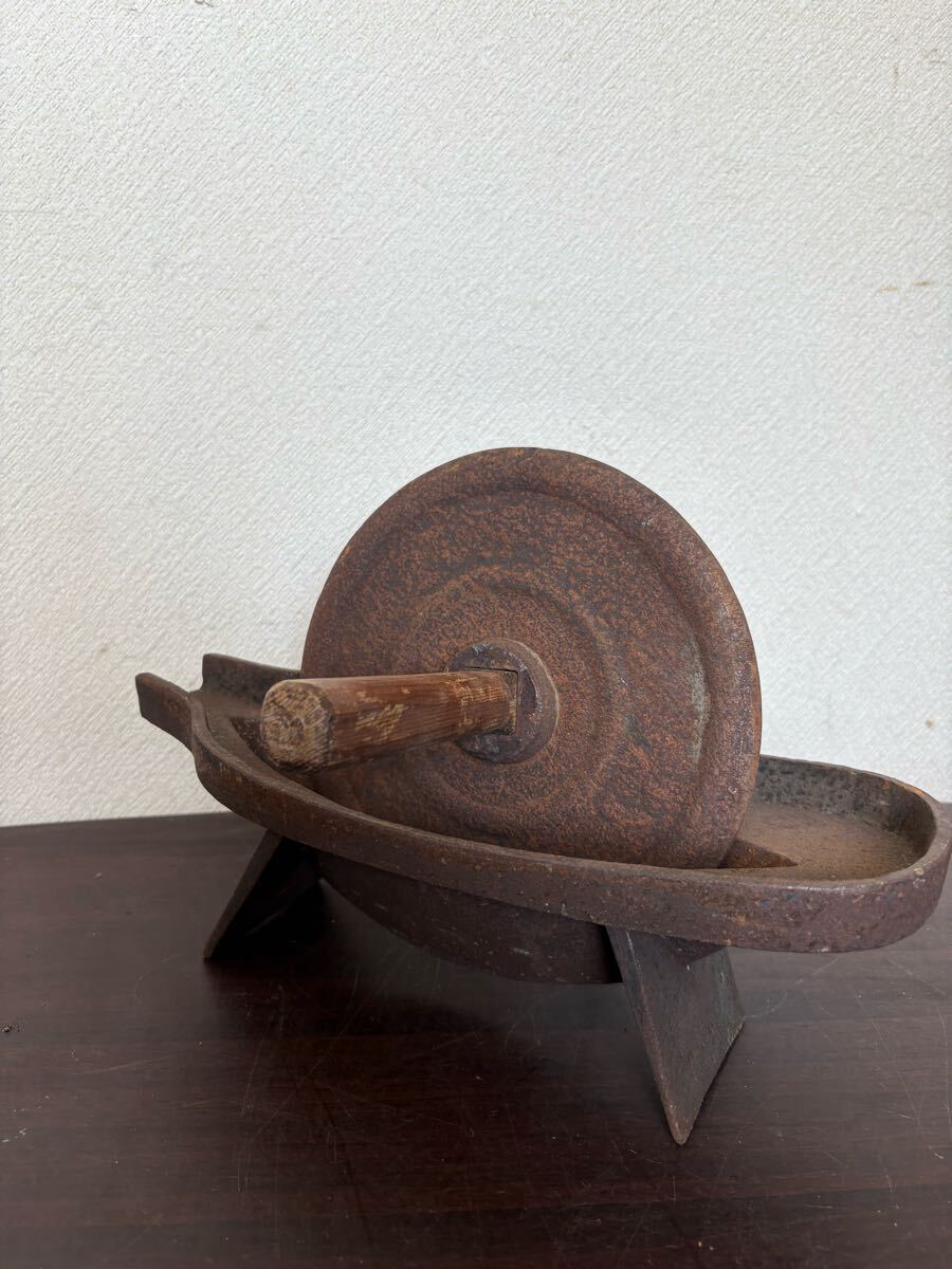 - 薬研 漢方 古道具 やげん 鉄製 古民具 薬草 アンティーク 薬 レトロ ディスプレイ オブジェ