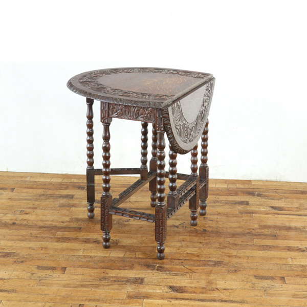 - ゲートレッグテーブル 折り畳み式テーブル 楕円形天板 美しい彫刻やボビンレッグがポイント イギリス アンティークフレックス 59892
