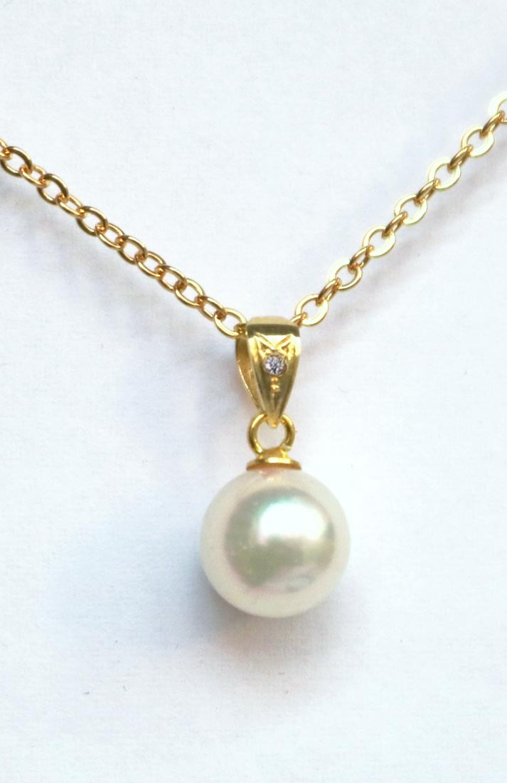- K18国産あこや本真珠ペンダント・8.3mm珠(ダイヤ0.01ct))241214