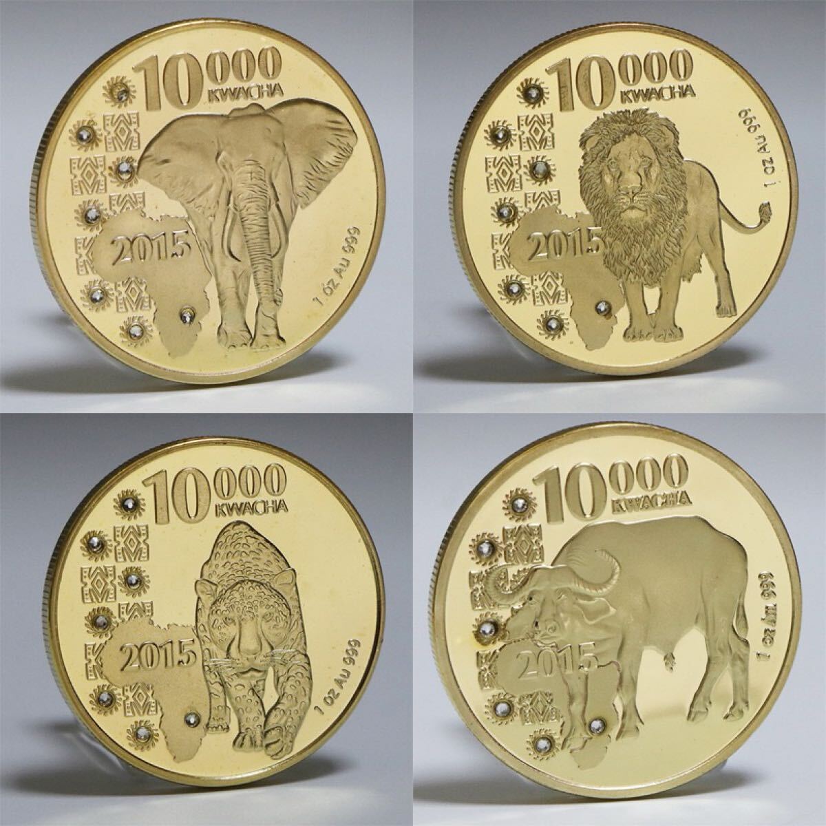 - 極美品 希少 南アフリカ ザンビア 2015年 動物記念硬貨 4枚セット コレクション 収蔵品 海外コイン 硬貨