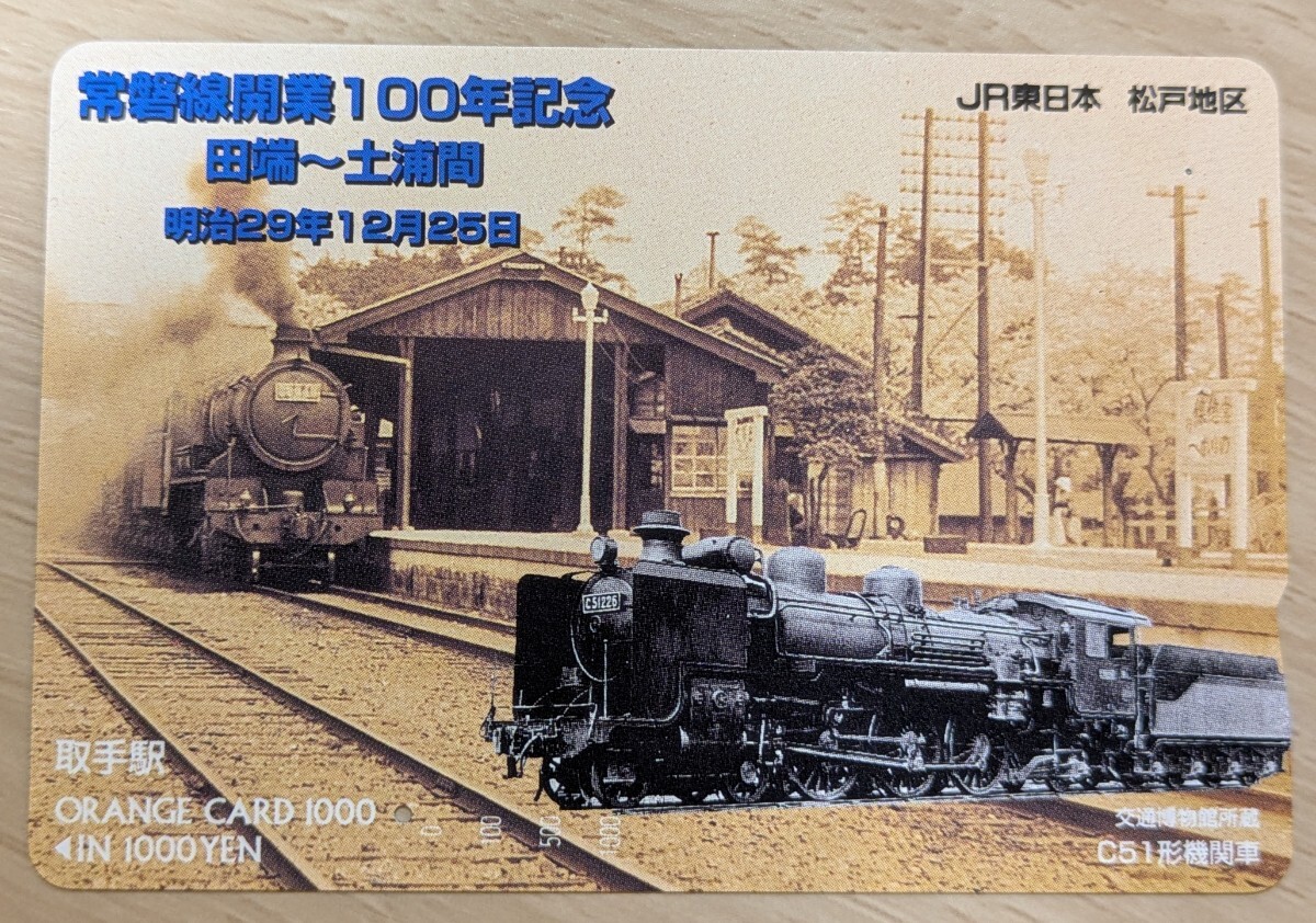 - 即決!使用済オレンジカード JR東日本・松戸地区 常磐線開業100周年記念 田端〜土浦間 取手駅 C51形機関車【一つ穴】