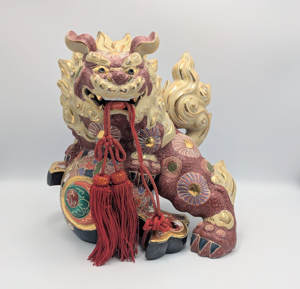 - 九谷焼 骨董 民芸品 宝獅子 魔除け獅子 縁起物 獅子 狛犬 置物 小槌獅子 小槌 シーサー 赤獅子 双仙銘