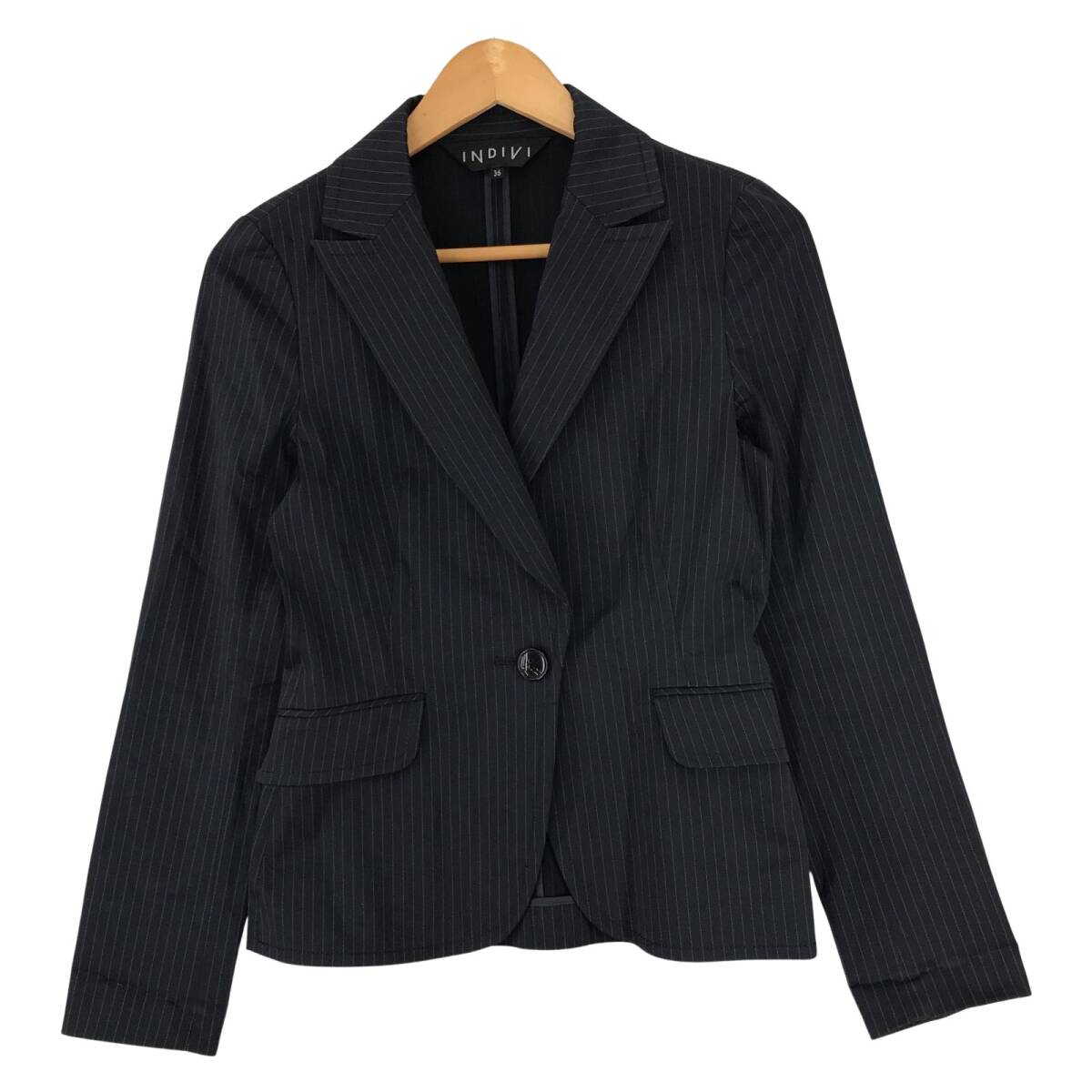 - INDIVI インディヴィ ストライプ テーラードジャケット size36/ネイビー