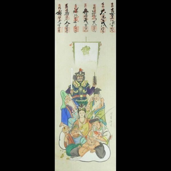 - 【爨】古美術品 在銘 七福神図 121cm×42.5cm 肉筆紙本 掛軸 縁起物 [F71]/.廻//(100)