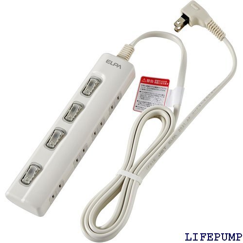 - エルパ ELPA スイッチ付タップ コンセント 延長コ LED 横差し 4個口 2m WLS-LY42EB W 8984
