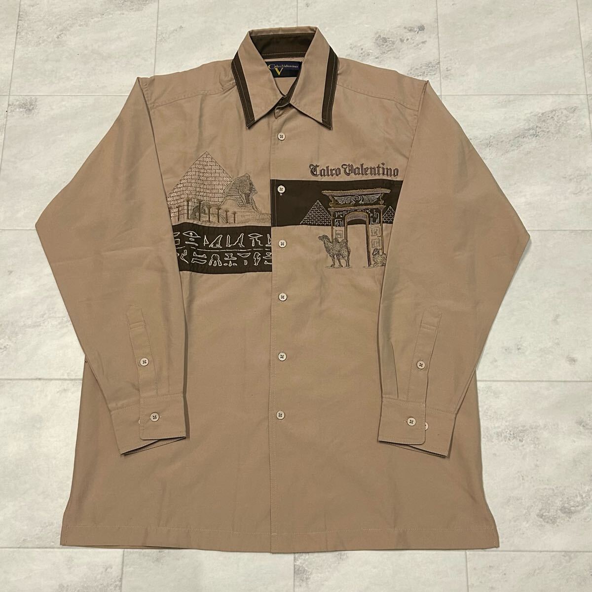 - Calro Valentino 刺繍 古代 エジプト スフィンクス ピラミッド ラクダ ビンテージ 長袖シャツ ポリエステル100%