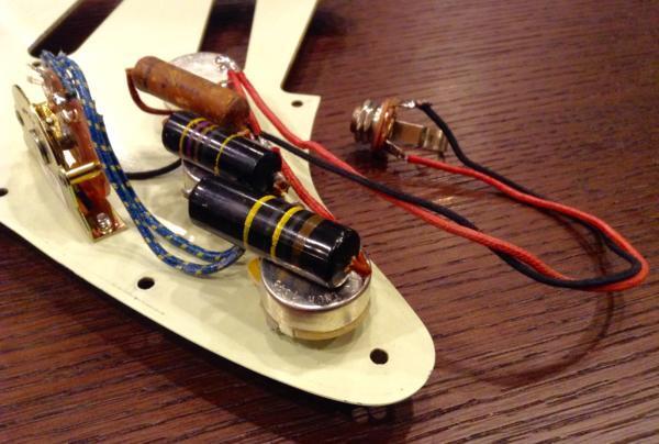 ビンテージコンデンサー専門店パルスコミューンお勧め "最強ストラト用アッセンブリ/ビンテージ Bumble Bee 仕様"(受注生産)ビンテージコンデンサ、ビンテージ配線、ビンテージはんだ仕様、ストラト用アッセンブリ(インチサイズ)です。ビンテージ配線にすることで、ビンテージコンデンサで改善された音質がリアルに表現されます。ビンテージの配線材は、高級ギターも含め、現代のギターに一般的に使用されている配線材と解像度の次元が違います。今までスピーカーの奥で曖昧に鳴っていた様な音が、リアルに広がり飛び出してきます。今まで聞こえなかった音が聞こえるようになり、透き通る様なクリーン、ニュアンスだらけのひずみサウンドがご堪能頂けます。ビンテージ配線材は数多くの材を吟味し、現代の一般的なギターサウンドの音色に近い物、そしてギターサウンドを最大限に引き出す物をチョイスしています。コンデンサは人気のビンテージBumble Bee、ハイパスも人気のSprague Waxを使用、複数の同じ数値の物から一番相性、トータルバランスが良いものを3個セレクトしています。トーン1はフロント・センター、トーン2はリア専用です。2個のビンテージコンデンサを音域の違う3種類のピックアップにマッチしたコンデンサを付けることで、それぞれのピックアップはもとより、2つのハーフトーンがベストな音質になります。またビンテージコンデンサを2個付けることにより、一般的な1個の音質よりも格段に迫力を増します。ハイパスは絞っていった時に高音がフルテン時と同じ感じになる様に個体をセレクトしています。絞ってもフルテン時の芯のある音質はそのままに、ゲインのみをコントロールする様な、実戦で大活躍する人気のセッティングです。(一般的なトーン1個付け、ハイパスなし等のアッセンブリも製作致します。お問い合わせ下さい。)付属の補修用ビンテージはんだでお手持ちのピックアップ(3カ所)、ボディにつながっているアース(1カ所)をはんだ付けするのみです。はんだごてさえあれば簡単な作業です。取り付け場所の説明書が付きます。この音に慣れると、他のギターが弾けなくなるほど素晴らしい音質です。ビンテージコンデンサや配線材は、大昔の古臭い音質になるといったことではありません。単純に現代の多くの不純物からくる耳障りな音域や、微妙な変化が表せない曖昧なこもった音質、現代の進化したピックアップの力を最大限に出すことができます。現行のどんなエフェクター、ケーブルを使用してもこの音を出すことは出来ません。ご自分のギターの力を最大限に引き出したい方、音色で悩まれている方、オールドは高価で手が出ないといった方など、ボリューム、トーンポット - CTS Custom 250k Aカーブ5way セレクター - All Parts Japan基本的に受注製作です。在庫のない場合は発送まで最短3日程、最長で1週間お時間がかかります。コンデンサの変更(選ぶコンデンサにより価格は変更致します。)、その他ご要望はお気軽にお問い合わせ下さい。配線材は写真と別の物になることがあります。また音質を考え、違う種類の物をブレンドすることもあります。ビンテージコンデンサはリード線を延長している物もあります。ハイパスのSprague Waxはプライベートブランドの物になることがあります。音質は変わりありません。写真のピックガードは付属しません。またノブも付属しません。Cornell Tiger PB Waxアッセンブリ27980円いつもパルスコミューンさんにお任せで、一緒に最高のサウンドを作ってもらってます!どこまでもクリアでクリスタルなトーン。音のレンジ レガート、ピッキングのニュアンスの幅が格段に広がります。Hendrix、SRVのトーンを目指してダンブル系アンプなど買い揃えましたが納得いかず色々探求した結果、パルスコミューンさんのビンテージコンデンサーと配線に変えた事でグッとあのトーンに近づきました。良く言われている、コンデンサーでは音が変わらない。変わっても微妙な差しかない。というような意見は気にせず、まず一度試してみる事をオススメします。変えてみて違いが分からなければ元に戻すなりして、気に入れば色々なモデルを試されると良いと思います。値段も数百円、数千円程ですし、高額なPUやシールドに変えるより安く済みますのでリスクも少なく、商品説明、各モデルの解説など非常に詳しく、充実していますので良く参考にされて気になるものを購入されると良いと思います。音出ししてビックリしました!今まで使っていたギターと同じもの?と疑ってしまうほど良い音になりました。2万円弱でビンテージ並みの音になるのなら、ギター好きな皆さん、是非とも取り付けをお薦めします。シングルコイルのアッセンブリーをお願いして、劇的に音が良くなったので、社長さんにお薦めのコンデンサーを選んでもらい、取り付けましたが、こちらも唸るハムの激しさと、キレの良さを合わせ持つギターをなりました。----------------------------