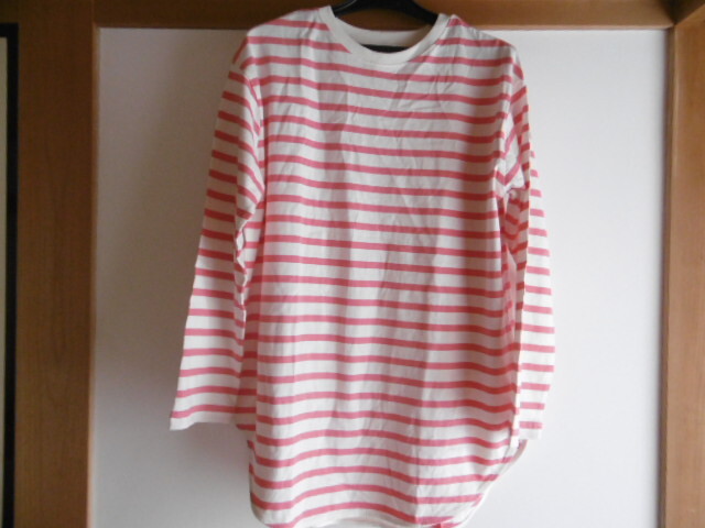 > 未使用 昨年 アメリカンホリック オーバーサイズ 長袖カットソー/チュニック ピンクボーダー/ラウンドカットプルオーバー M