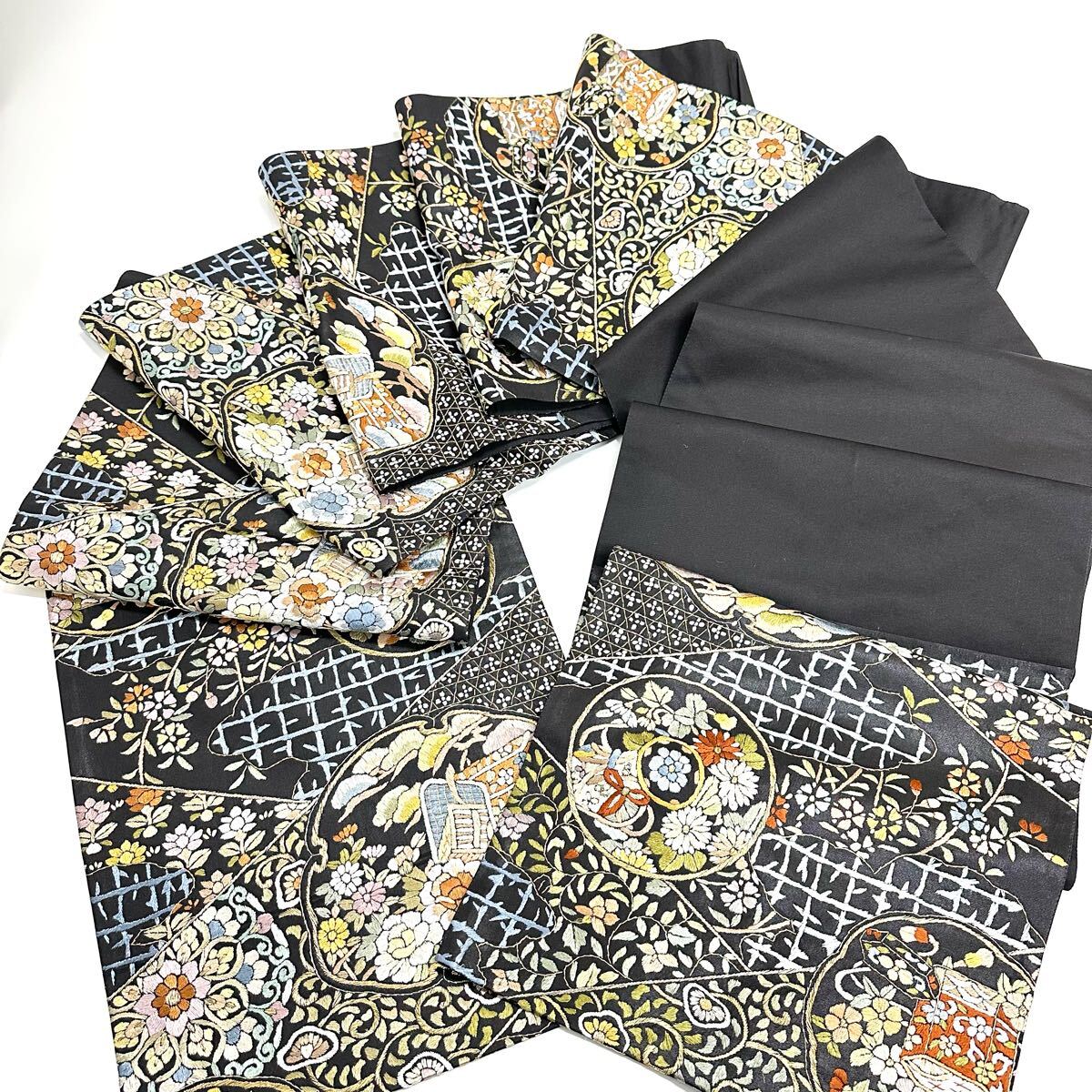 - 【七福】c534 逸品 高級品 正絹 袋帯 六通 華文 唐草 金糸 刺繍 豪華