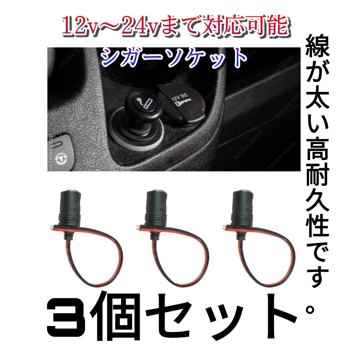 - 3本 高耐久性 車用シガーソケットメス 12V-24Vどちらも可 太いケーブル