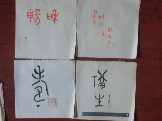 - 広瀬栄一コレクション印譜●昭和45年 長曾我部木人の印譜 4枚 殷墟文字和 福生 壽 250508 古文書