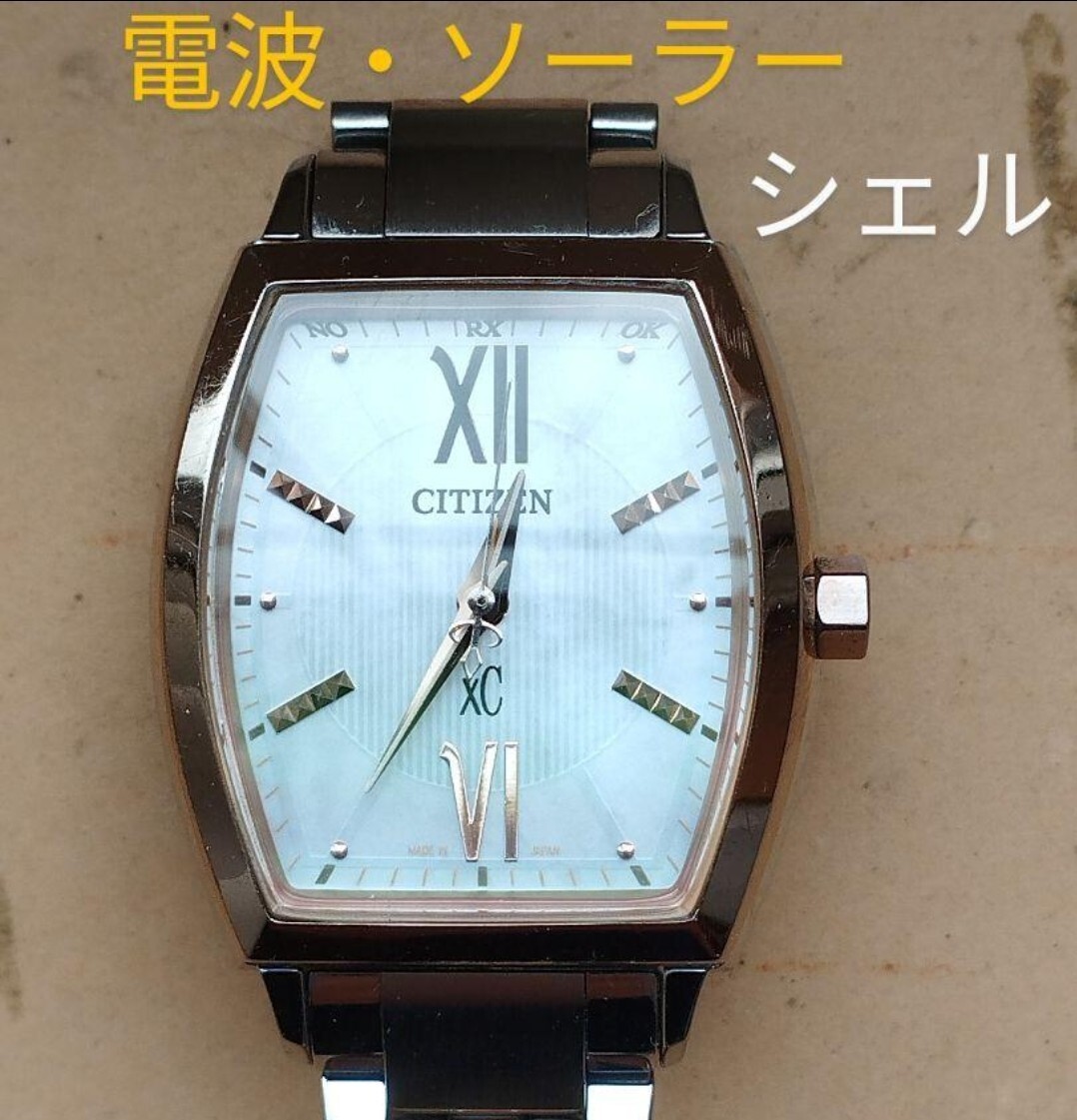 - AT15 シチズン・xC 電波・ソーラー時計 耐磁 シェル文字盤 レディース