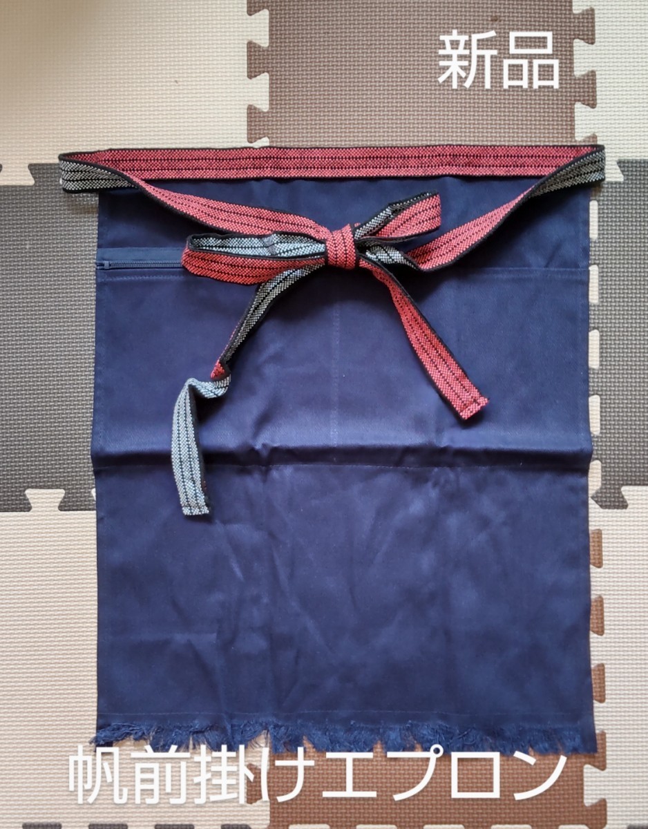 - 昭和レトロ風 帆前掛け エプロン 無地 ポケットファスナー付き 新品 未使用品