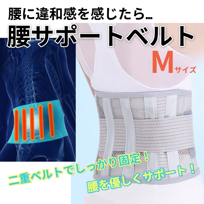 - サポートベルト メッシュ素材 腰痛 腰ベルト コルセット ライトグレー M